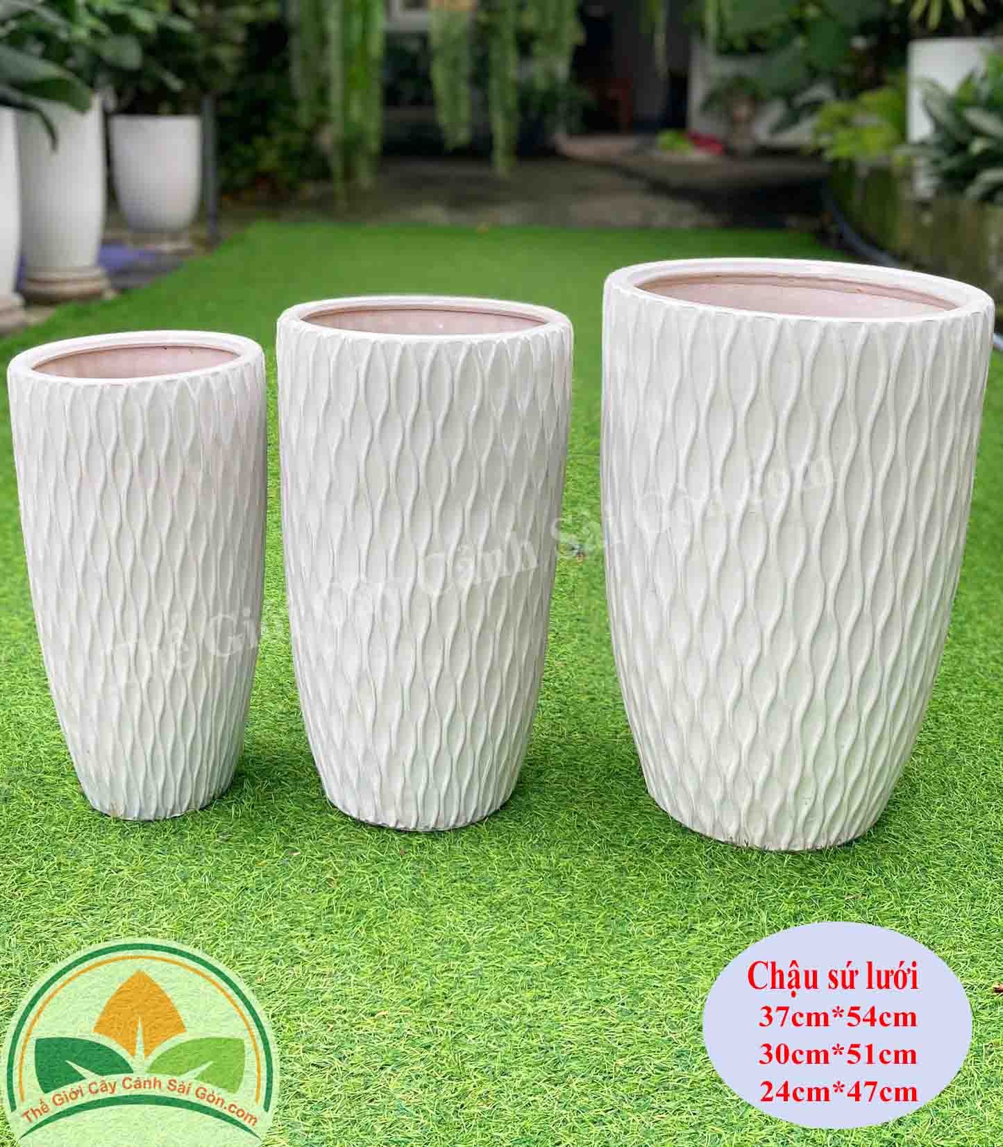 Mẫu chậu sứ mặt lưới D30H50 trồng cây trưng trong văn phòng