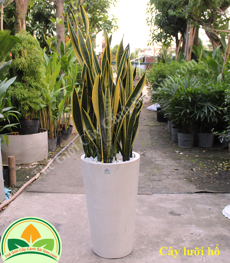 Mẫu chậu xi măng đá mài cây đá trồng cây lưỡi hổ vàng